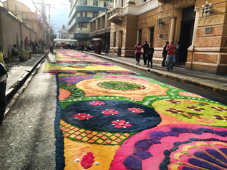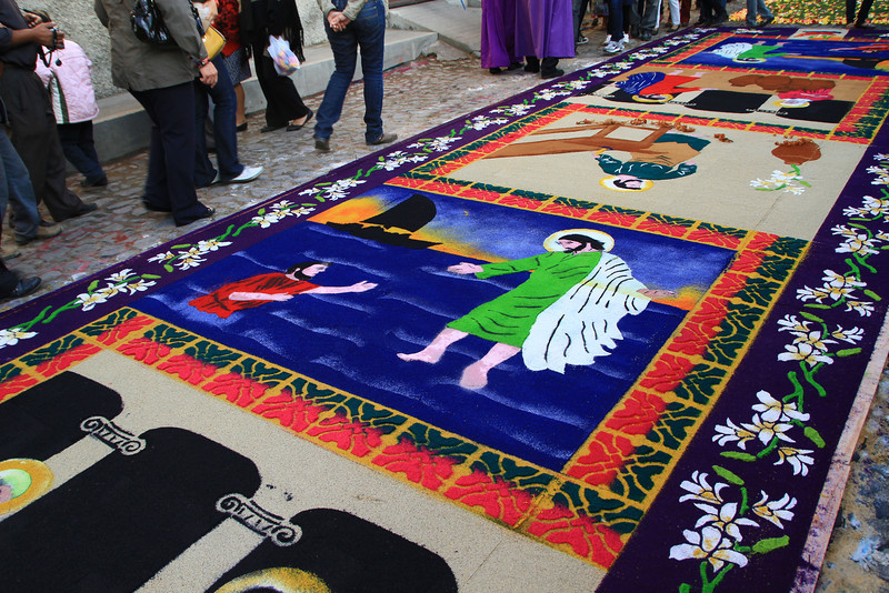 Although I visited Guatemala and Honduras multiple times as a child I have never had the privilege of seeing firsthand the incredible dyed sawdust carpets of Semana Santa, holy week. These are temporary works of art, forming a carpet for the parades and processionals that take place throughout the week leading up to Easter. The first photo is from Tegucigalpa, Honduras, the rest are from Guatemala. Aren’t they magnificent?